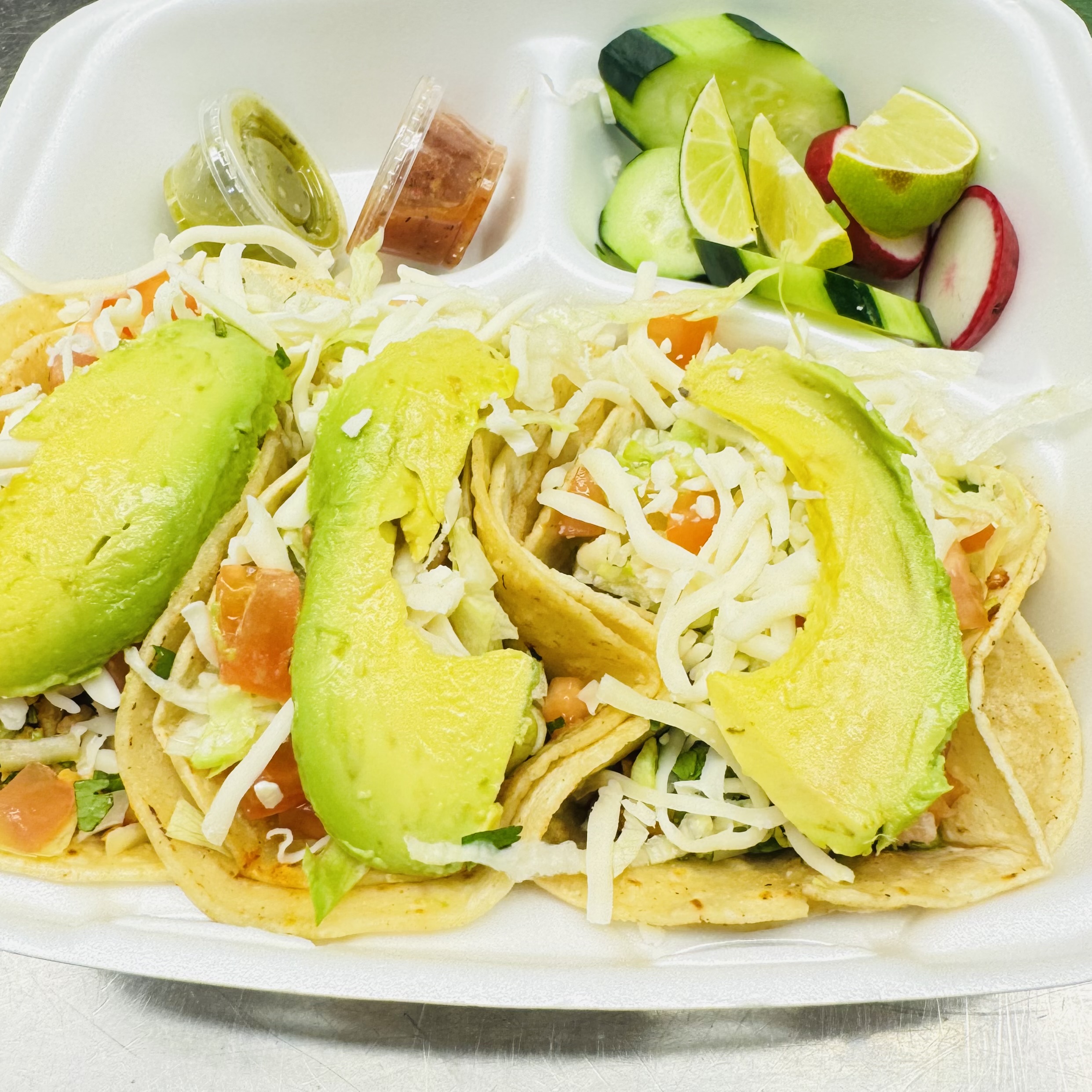Add side of Pico de gallo or Guacamole, if you love spicy ask for jalapeños mixed with the traditional bell peppers. You have a choice of corn or flour tortillas.